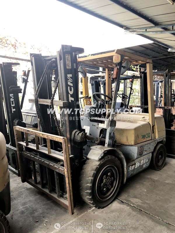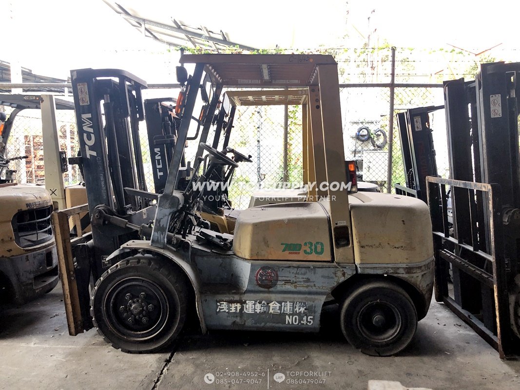 รถยกนำเข้าญี่ปุ่น ยี่ห้อ: TCM รุ่น: FHG30N5 นน.ยก: 3.0 TON ยกสูง: 3.0 m เครื่องยนต์: NISSAN H25 (GAS/LPG) เกียร์: AUTO อุปกรณ์เสริม: SIDE SHIFT งาสไลด์ซ้าย-ขวา-